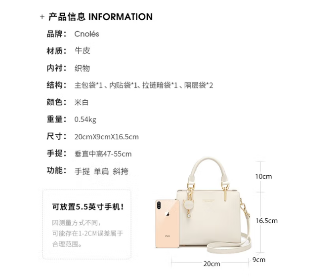 Cnoles Women's Handbag 2025: High-End Crossbody Handbag/Shoulder Bag